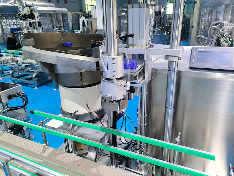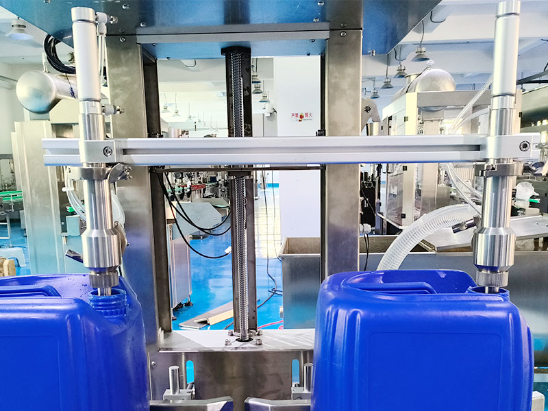 直線式稱重灌裝生產主要由PLC控制系統逐一調度生產模式,其中的各個環節都通過傳感器與執行器實現無縫銜接的灌裝優勢,工人將所需灌裝的容器放置在輸送帶上,輸送裝置將容器分布送至各個灌裝工位的灌裝頭下方,光電感應控制則會實時檢測容器口位置,并將其固定,伺服電機則會精準的控制灌裝頭的位置標準,在進入灌裝區域后,直線式稱重灌裝生產線的PLC啟動灌裝閥,由此開始進行先快加后慢加的工作條件,在達到設定的重量后,灌裝閥自動關閉,完成生產任務,隨后上蓋機將會跟隨容器位置進行自動上蓋、旋轉扭矩將其旋緊的工作狀態。