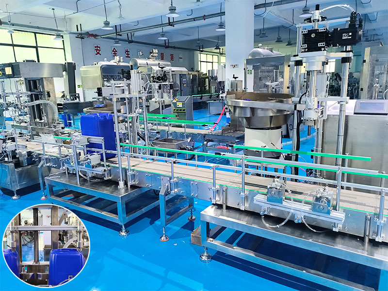 直線式稱重灌裝設備集成多組獨立稱重灌裝、智能聯動控制、自動上料、在線監測、自動排廢、智能送出等工序,直線式稱重灌裝生產線核心在于實現了聯動同步生產的作業模式,根據不同的生產要求靈活變動灌裝方式,提高灌裝產能。直線式稱重灌裝生產線集中了:輸送機、灌裝機、上蓋機、旋蓋機、貼標機等諸多自動化設備的聯動灌裝。