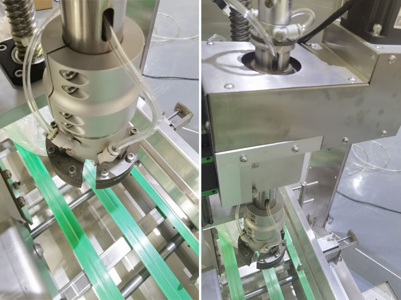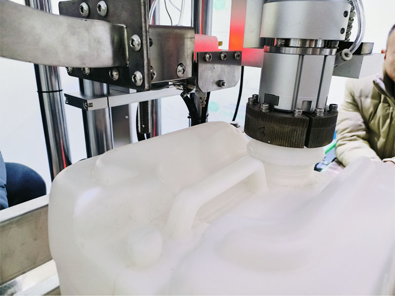 大桶抓式擰蓋機的技術優勢在于聚焦的適配性和智能控制方面,在整體結構上,這款設備采用了防爆型電機與電氣元件,可在揮發性氣體的化工車間安全運行,抓式擰蓋頭以耐酸堿不銹鋼材質打造,可抵御化工原料殘留的腐蝕性,在技術方面,化工桶自動旋蓋機搭載的工業級PLC與觸摸屏,可存儲 50 組不同規格化工桶的擰蓋參數,更換桶型時一鍵調整參數,無需反復調試,便能快速更換。