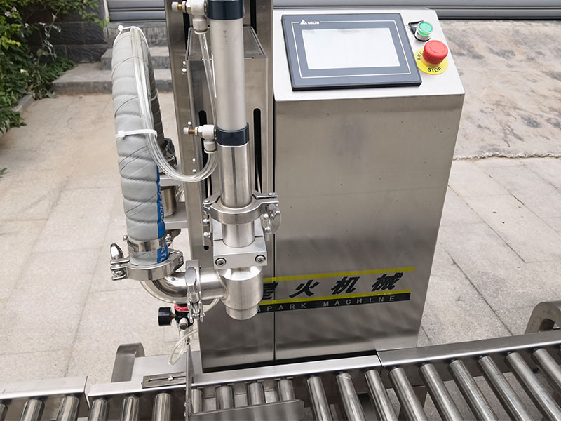 工作人員將所需灌裝的容器放置在稱臺上,確保桶口朝上,并在25升灌裝旋蓋設備上進行參數規格的設定,提前備至好灌裝原材料,系統將會自動偵測到桶的定位,灌裝槍智能插入桶口,自動去皮后,打開灌裝槍以及球閥組開始進行灌裝,在灌裝過程中,化工液體稱重灌裝機會通過大小球閥組以及灌槍的分段控制,實現快速、精準的統一化克重信息,在化工液體達到預設的目標值時,灌槍將自動關閉并升至桶外,此時滴漏盤承接灌裝頭底部的漏液,保障物料的不浪費和容器桶的干凈整機,隨之25升灌裝旋蓋設備將進入自動旋蓋區域。