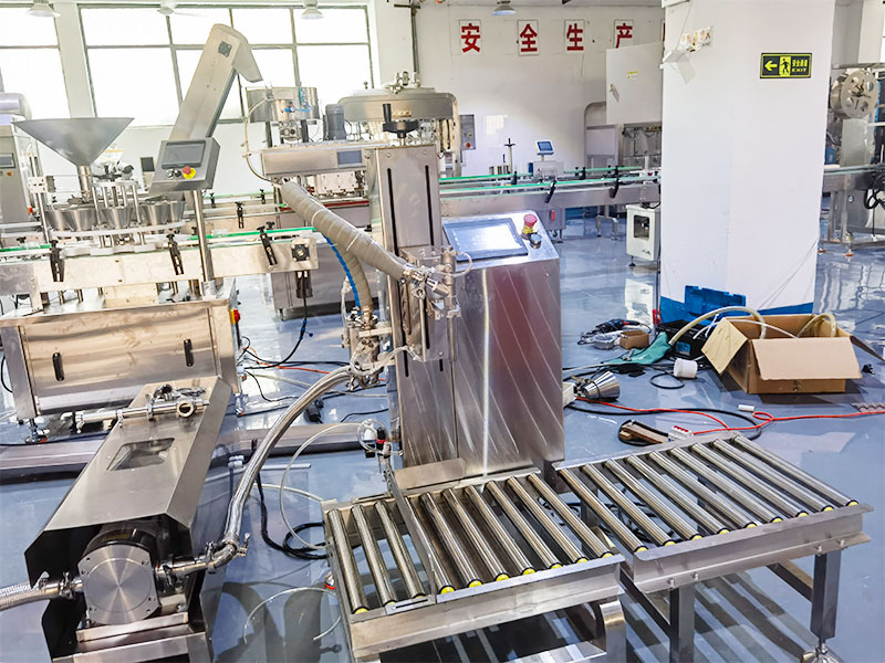 化工液體稱重灌裝機運用整套機械設備的相互配合,能夠對化工液體、涂料、潤滑油、農藥、油漆、油墨等帶有一定腐蝕性的物料進行自動化灌裝工序,25升灌裝旋蓋設備集中了:輸送機、上蓋機、旋蓋機、灌裝機等機械,可對10-25升的大桶液體物料執行統一化的灌裝標準,并且可在不需要人工輔助的狀態下執行。