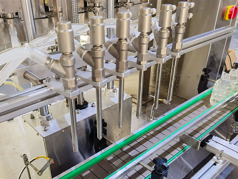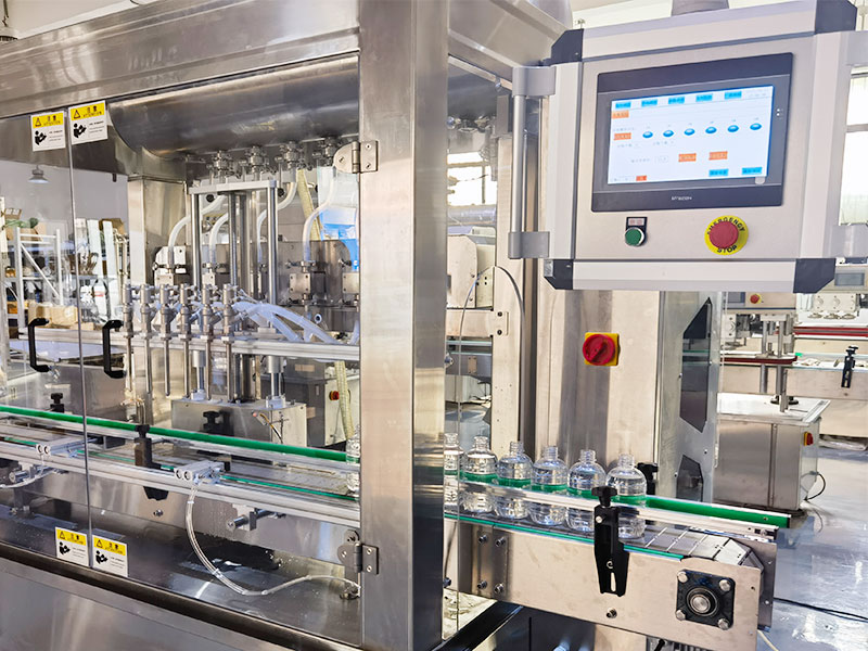 2、全自動數控液體灌裝機配備了多頭同步協調灌裝模塊,可保證每一個灌裝頭吸料、出料動作的高度同步,避免因多頭作業導致產能波動。